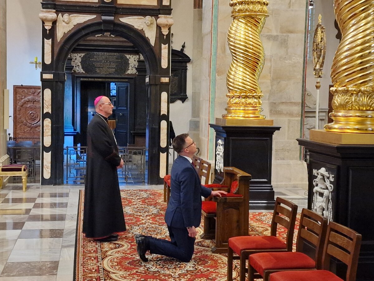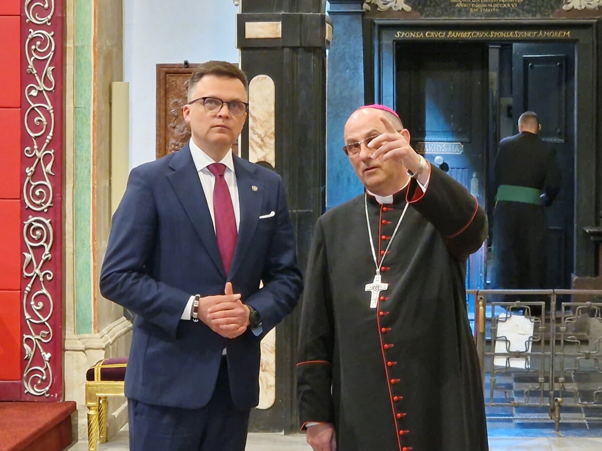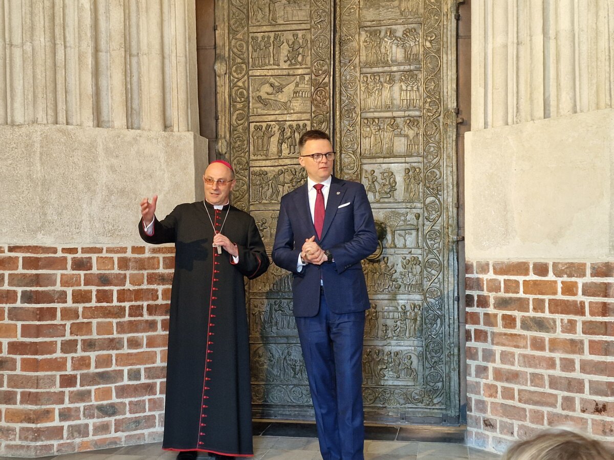 Jednym z mniej oficjalnych punktów piątkowych uroczystości jubileuszu koronacyjnego w Gnieźnie, była wizyta w katedrze Szymona Hołowni, marszałka Sejmu. Po poprowadzeniu wspólnego posiedzenia obu izb parlamentu, udał się on na spotkanie z Prymasem Polski.
