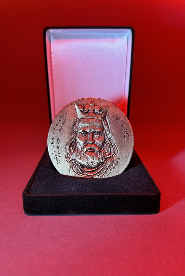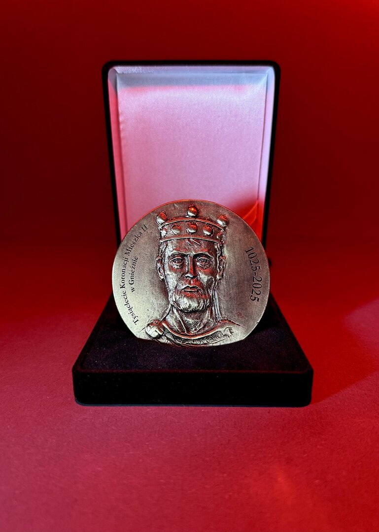 Medal ten, podobnie jak w przypadku dwóch poprzednich, upamiętnia rocznicę pierwszej polskiej koronacji królewskiej, która miała miejsce w Gnieźnie. Na medalu widnieją podobizny Bolesława Chrobrego (awers) i Mieszka II (rewers) wraz z datami 1025-2025. Odznaczenie zaprojektował artysta – rzeźbiarz Tomasz Jędrzejewski, autor m.in. statuetki Królika – Nagrody Kulturalnej Miasta Gniezna, podobizny Offelii wręczanej jako grand prix podczas Festiwalu Filmowego Offeliada, czy też podobizn pięciu pierwszych królów Polski. Pierwszym wyróżnionym nowym odznaczeniem przez Michała Powałowskiego, prezydenta Gniezna, został abp Wojciech Polak, Prymas Polski. – To postać wybitna i zasłużona, nie tylko dla Kościoła Katolickiego, ale przede wszystkim dla Gniezna. Już dzisiaj dziękuję mu za ogromny wkład w przygotowania do rocznicy Gniezno 2025, w tym szczególnie za wsparcie w konstruowaniu Komitetu Honorowego obchodów – powiedział wręczając medal prezydent. – Serdecznie dziękuję Panu Prezydentowi za przekazanie mi medalu koronacyjnego, który upamiętnia 1000-letnią historię królewskiego Gniezna. Widzę to jako kolejny znak, obok listu intencyjnego podpisanego w czerwcu, na drodze wspólnego przygotowania przyszłorocznego wyjątkowego jubileuszu dwóch koronacji – skomentował prymas.
