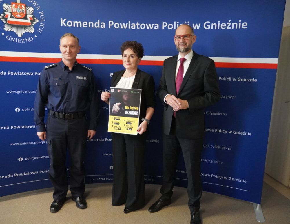 W podobnym tonie wypowiada się włodarz powiatu gnieźnieńskiego. – Ta akcja jest bardzo potrzebna. Ostatnie przypadki wyłudzeń pieniędzy, chociażby na pomoc powodzianom pokazują, że z jednej strony ludzie mają dużo dobroci, ale z drugiej musimy zwalczać tego rodzaju proceder oszustw internetowych. Chcemy, żeby ta kampania społeczna funkcjonowała w dłuższym okresie i dotarła do jak największej liczby mieszkańców naszego powiatu – mówi Tomasz Budasz, starosta gnieźnieński, Akcja będzie prowadzona m.in. w mediach społecznościowych i lokalnych, bowiem problem podatności na tego typu wyłudzenia dotyczy nie tylko osób starszych, jak powszechnie się uważa, ale też osób młodych, dwudziesto- i trzydziestolatków. – Mamy wydany plakat, z których chcemy dotrzeć do wszystkich klubów seniora, do wszystkich szkół, chcemy, aby on zaistniał w przestrzeni publicznej – dodaje starosta.