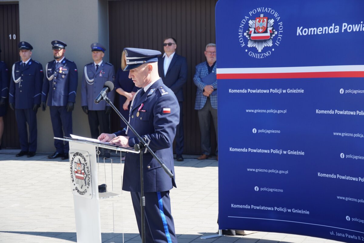 – Jest to dla nas, policjantów dzień szczególny. Jednak świętuje wąskie grono osób, pozostali policjanci pełnią trudną, odpowiedzialną służbę, są na interwencjach, patrolują ulice – powiedział komendant powiatowy policji w Gnieźnie insp. Przemysław Kozanecki. Komendant złożył życzenia wszystkim policjantkom i policjantom oraz pracownikom Policji życząc dalszych sukcesów w służbie i w życiu rodzinnym. Podziękował przedstawicielom władz samorządowych za wzorową współpracę oraz instytucjom wspierającym pracę naszych policjantów, dzięki którym możliwe jest realizowanie wielu inicjatyw. Policyjne święto zakończono piknikiem na Rynku.