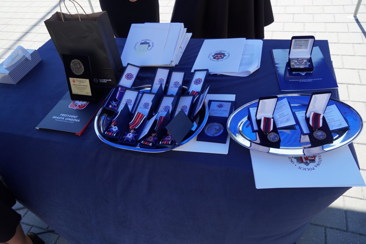 Główna uroczystość odbyła się na dziedzińcu Komendy Powiatowej Policji w Gnieźnie. W uroczystej zbiórce udział wzięli m.in. zastępca Komendanta Wojewódzkiego Policji w Poznaniu mł. insp. Violetta Mójta, parlamentarzyści i przedstawiciele władz samorządowych, zaprzyjaźnionych służb mundurowych, instytucji, zaproszeni goście oraz gnieźnieńscy policjanci i pracownicy policji. – Jest to czas, kiedy możemy podziękować funkcjonariuszom i pracownikom Policji za ich służbę i zaangażowanie. Za trud włożony w zapewnienie bezpieczeństwa mieszkańcom powiatu gnieźnieńskiego. Policjantkom, policjantom i pracownikom cywilnym, którzy odebrali odznaczenia, wyróżnienia i awanse na wyższe stopnie służbowe, gratuluję – powiedziała mł. insp. Violetta Mójta.