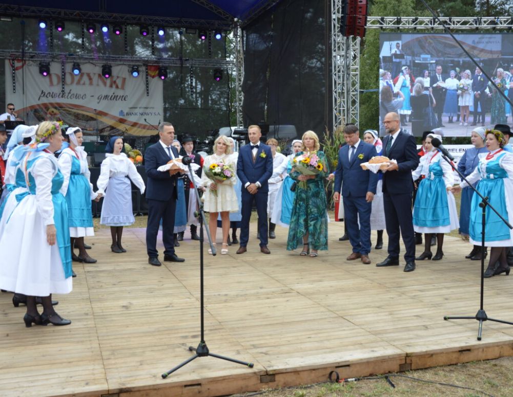Uroczystości dożynkowe rozpoczęły się mszą świętą w kościele pw. Narodzenia NMP w Imielnie. Po wspólnej modlitwie nastąpiło uroczyste przejście w barwnym korowodzie, przy akompaniamencie Orkiestry Dętej z Grodziska Wielkopolskiego, na plac dożynkowy w Imielenku, gdzie kontynuowano część oficjalną. Przy oprawie, o którą zadbał Zespół Tańca Ludowego „Gniezno”, przeprowadzony został tradycyjny obrzęd dożynkowy. Gospodarze święta plonów, Tomasz Budasz – starosta powiatu gnieźnieńskiego i Andrzej Łozowski – wójt gminy Łubowo, przyjęli bochny chleba od starostów dożynek, których funkcję w tym roku pełnili: jako starostowie powiatowi – Renata Srocka ze Skrzetuszewa (gmina Kiszkowo) i Jacek Labrenz z Lednogóry (gmina Łubowo) i jako starostowie gminni – Joanna Darul z Żydówka (gmina Łubowo) i Wojciech Borowiak z Dziekanowic (gmina Łubowo). Obydwaj gospodarze podkreślali, że przekazany dar będą dzielili mądrze i sprawiedliwie, by nie zabrakło go w żadnym domu. Po tych słowach symboliczne kromki chleba zostały rozdzielone pośród zgromadzonych gości. – Po pięciu latach powracamy do powiatowo – gminnych obchodów Święta Plonów. To bardzo ważne święto dla społeczności lokalnej, ale również dla mieszkańców powiatu gnieźnieńskiego, bowiem powiat gnieźnieński jest powiatem typowo rolniczym. Dzisiaj mamy symboliczne podsumowanie ciężkiej całorocznej pracy rolników i myślę, że to jest dobry czas, by uroczyście podziękować rolnikom za ten całoroczny trud pracy i celebrować piękne, dożynkowe tradycje – mówił starosta Tomasz Budasz. W podobnym tonie o ciężkiej pracy rolników mówił włodarz Łubowa. – To trud rolników, ich poświęcenie, zaangażowanie oraz codzienna, ciężka praca sprawiają, że możemy mieć pewność, że dla nikogo z nas nie zabraknie zdrowej żywności i tej symbolicznej kromki chleba. Dziękuję Wam, rolnikom, w imieniu wszystkich – mówił wójt Andrzej Łozowski.