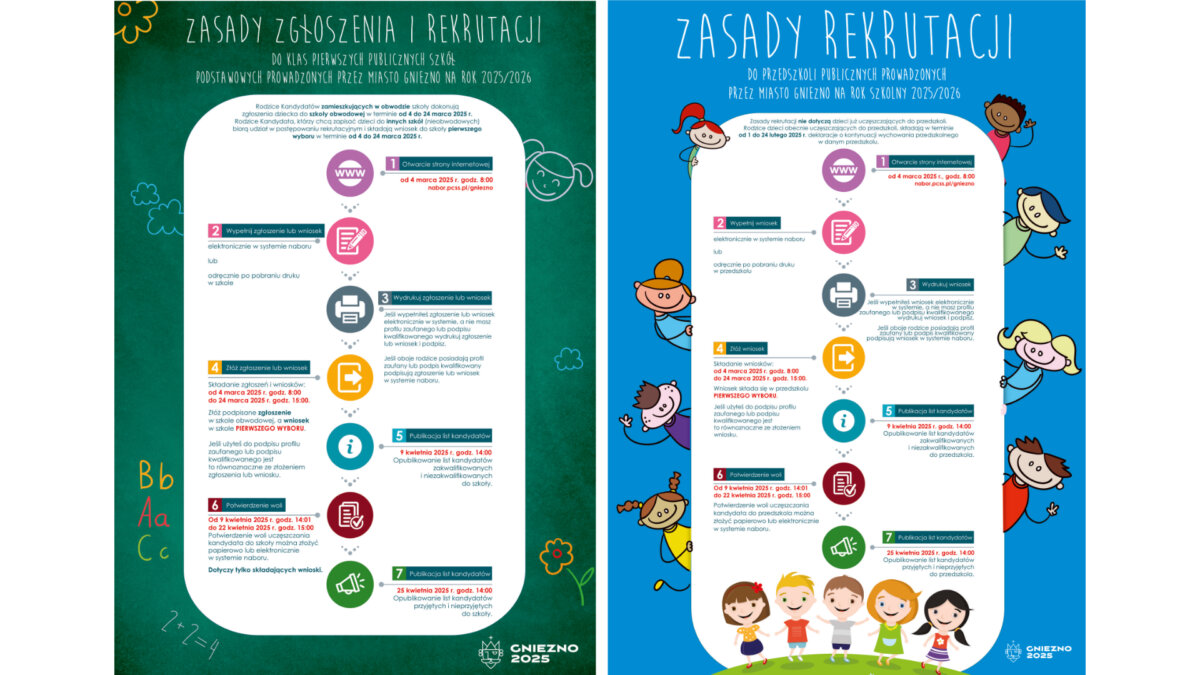 W Gnieźnie we wtorek, 4 marca rozpoczął się nabór dzieci do przedszkoli i szkół podstawowych. Rekrutacja pełna dotyczy 12 przedszkoli. W Przedszkolu nr 17 będzie tylko prowadzony nabór uzupełniający. W przedszkolach, w grupach trzylatków wprowadzony zostanie nowy program, a mianowicie powszechnej edukacji dwujęzycznej. Szkoły Podstawowe nr 3 i nr 8 zostały wyłączone z otwartego naboru; do tych placówek mogą być zgłaszane dzieci zamieszkałe w danym obwodzie. Koniec rekrutacji zaplanowano 24 marca.