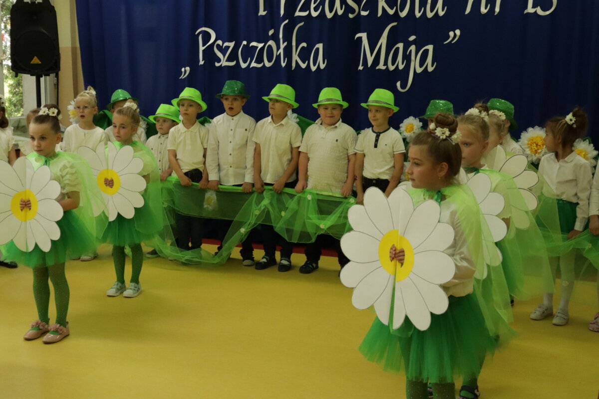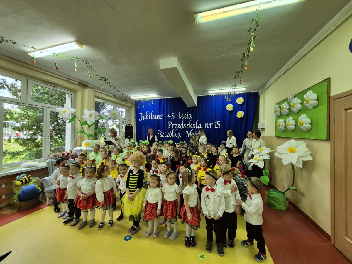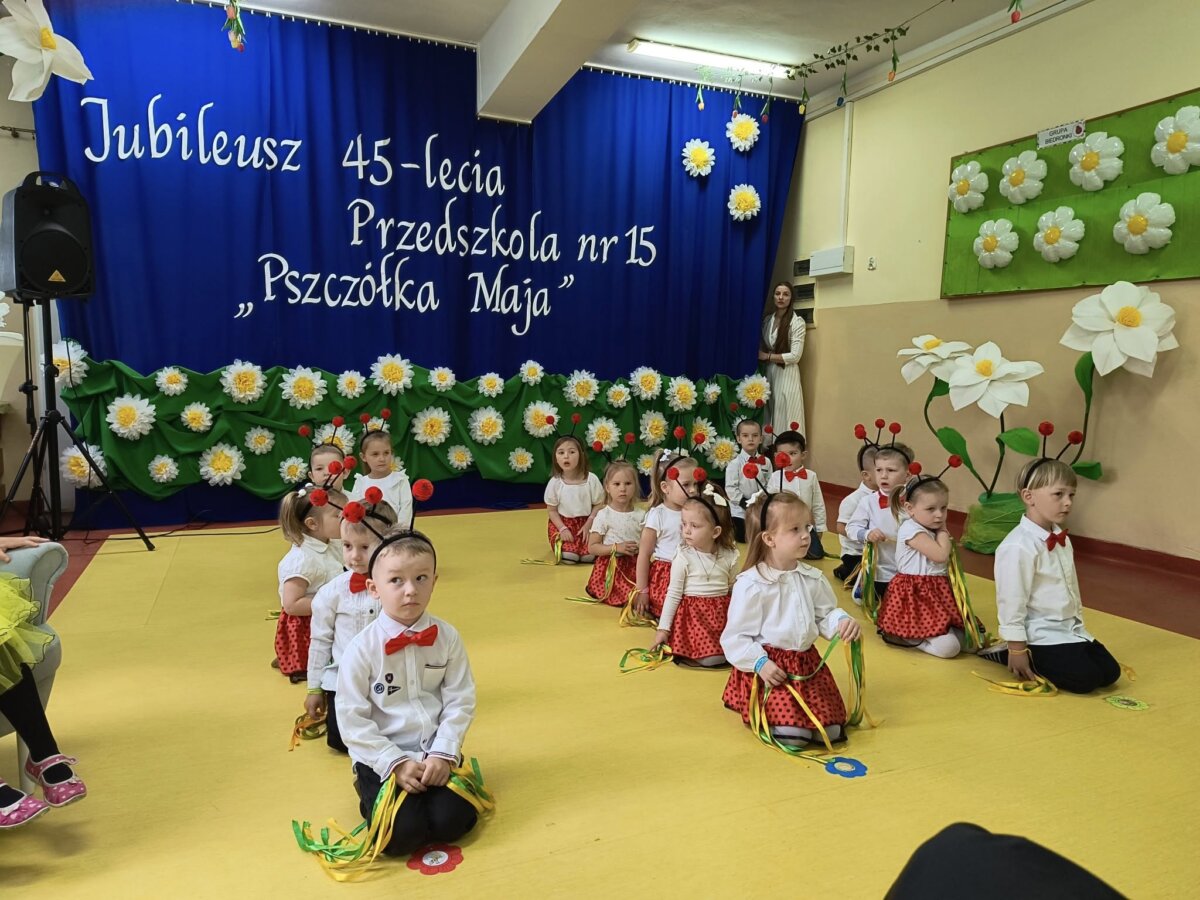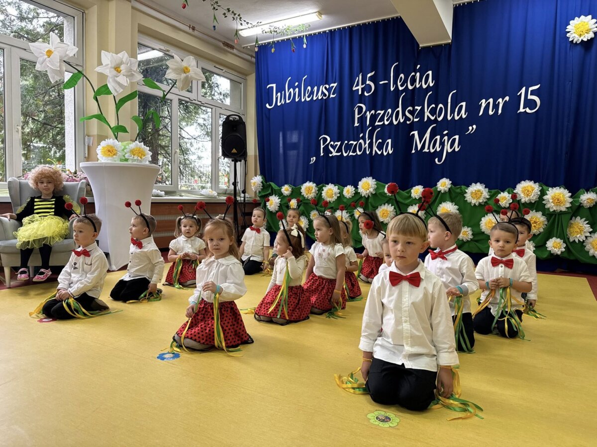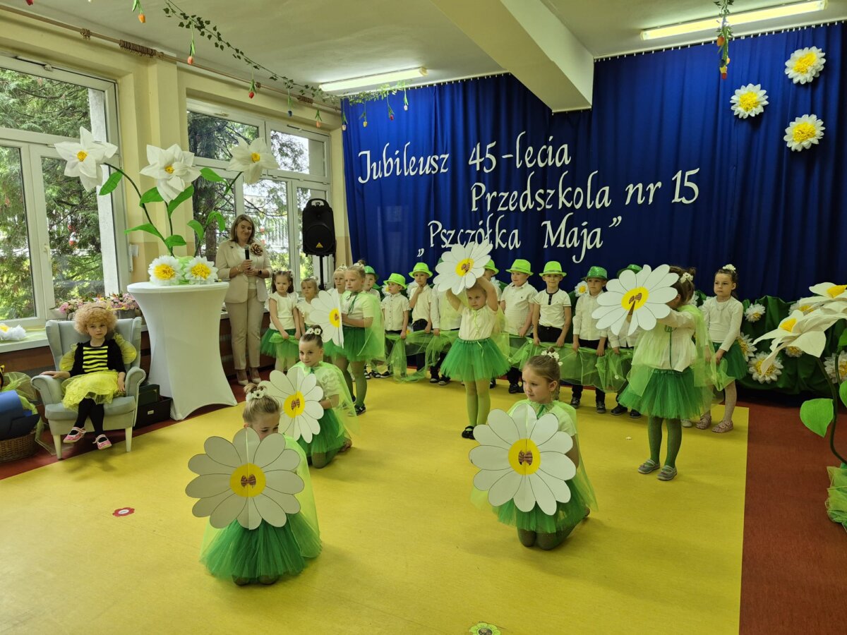 Pod hasłem: „Pszczółka Maja – miejsce, w którym dzieci rosną, kwitną i uczą się z radością!”, społeczność przedszkolna świętowała jubileusz wspólnie z zaproszonymi gośćmi, rodzicami, nauczycielami oraz dziećmi. Całość rozpoczęła się w niezwykle klimatyczny sposób – uroczystym wejściem bohaterki dnia, Pszczółki Mai (w tej roli: Maja Barańska z grupy „Świerszcze”), wprowadzoną przez „Zbigniewa Wodeckiego” – w którego rolę z wdziękiem wcieliła się pani Anna Grzeszczyk – pracownica przedszkola. Nie zabrakło oczywiście znanego utworu „Pszczółka Maja”, który wywołał wzruszenie i uśmiechy na twarzach wielu obecnych.