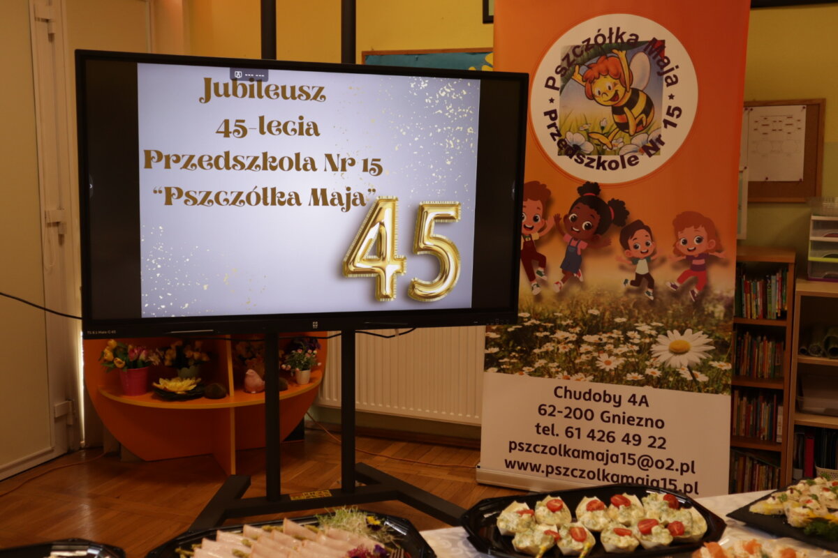 W piątek, 16 maja szatnia w Przedszkolu nr 15 „Pszczółka Maja” zamieniła się w barwną, tętniącą radością scenę. To właśnie tu odbyła się wyjątkowa uroczystość – 45. urodziny ukochanej przez dzieci „Pszczółki Mai”, a zarazem jubileusz przedszkola, które od 1980 roku jest drugim domem wielu pokoleń najmłodszych mieszkańców Gniezna.