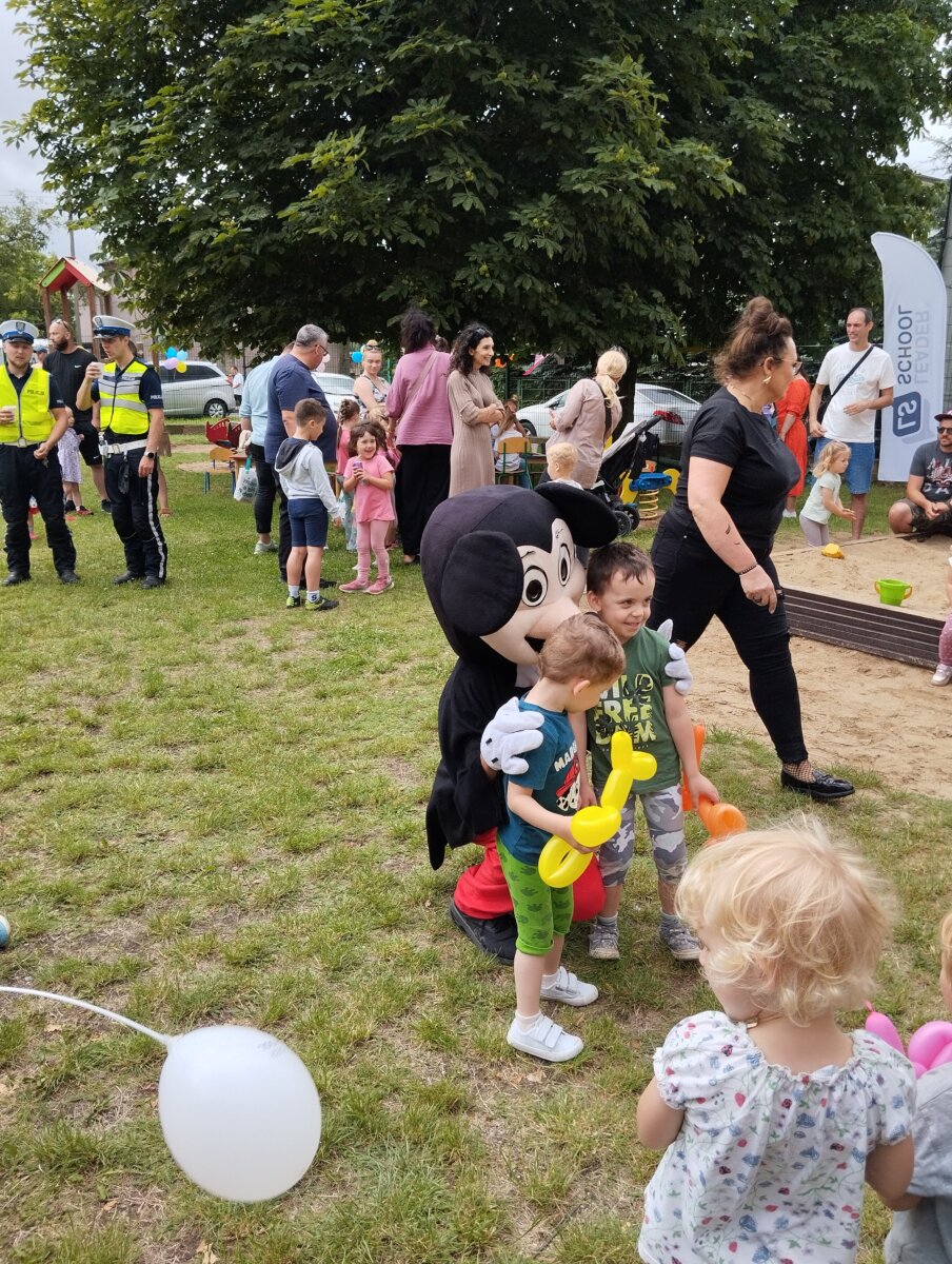 Tego dnia dzieci mogły spędzić czas miło i aktywnie. To właśnie dla przedszkolaków przygotowano m.in. zagrodę ze zwierzętami – kaczkami, królikami i kurczakami, przejazdy kucykiem i przewozy bryczką z końmi, wspólny taniec Zumby, stoisko sensoryczne oraz stoisko językowe Leader School, przy którym można było wziąć udział w krótkiej lekcji pokazowej języka angielskiego z nowoczesnym robotem – lektorem EMYS. Dużym zainteresowaniem zwyczajowo cieszyły się stanowiska służb bezpieczeństwa: policji i straży pożarnej; maluchy bardzo chętnie pozowały do zdjęć na tle wozu strażackiego, czy obok policyjnych motocykli. Można też było wsiąść do dość nietypowego traktora – Minionka. Na uwagę zasługuje również część artystyczna, w której to pracownicy placówki przygotowali dla gości wyjątkowe przedstawienie pt. „Teatr śpiewany wierszami”. Festyn stał się także doskonałą okazją do ogłoszenia zwycięzcy wiosennego wyzwania „Spacerkiem wokół Ziemi z Leśnymi Ludkami”, w którym grupa przedszkolna „Wróbelki” otrzymała puchar ze słodyczami.