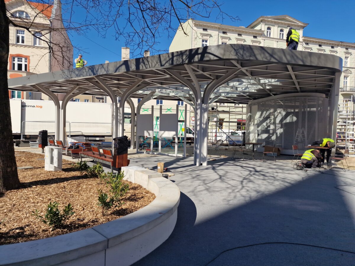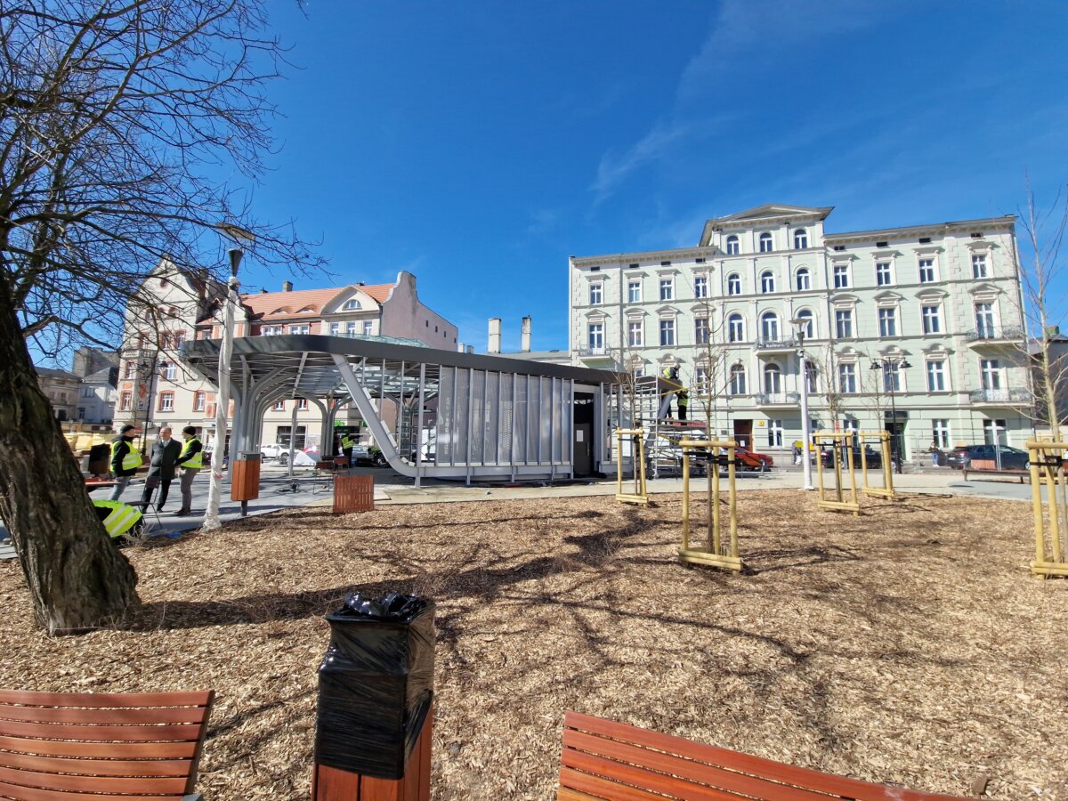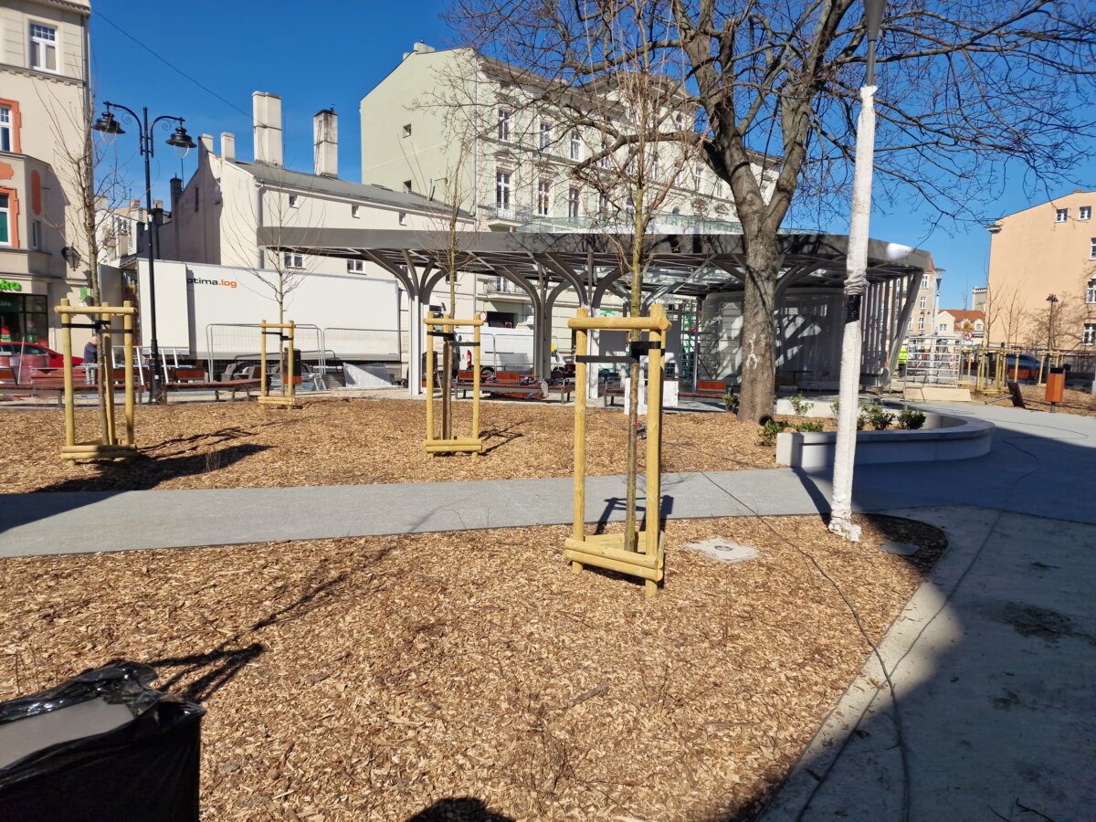 W piątek 28 marca zostanie udostępniony mieszkańcom Gniezna centralny skwer miasta, który – decyzją miejskich radnych – nosi już nazwę dra Mariana Fludra, Honorowego Obywatela Miasta Gniezna. Zostały zatem dni do otwarcia tej zrewitalizowanej przestrzeni i odsłonięcia pamiątkowej ławeczki jej patrona. – To ważny punkt, który kiedy się zazieleni, będzie nową wizytówką miasta – podkreśla Michał Powałowski, prezydent Gniezna. 18 marca przyglądał się on wraz z dziennikarzami postępom prac. – Codziennie przechodzą tutaj setki mieszkańców i znajduje się przystanek autobusowy, który jest głównym miejscem przesiadkowym centrum. Musi mieć zatem godny wygląd – dodaje. Cała inwestycja mogła być zrealizowana dzięki środkom unijnym z programu adaptacji miast do zmian klimatu. Gniezno otrzymało na ten cel 2 mln złotych. Co istotne – woda deszczowa, która spadnie na powierzchnie utwardzone, zostanie ponownie wykorzystana do podlewania zieleńca w porze suchej. – Mamy tutaj zbiornik retencyjny i tak skonstruowane przepływy, że ta woda zostanie zagospodarowana tutaj na miejscu – mówi Joanna Śmigielska, wiceprezydent miasta. Oprócz licznych ławek, stolików, krzeseł, skwer ma też zadaszony przystanek autobusowy z publiczną toaletą. Jednak najważniejszym punktem skweru będzie miejsce pamięci dra Mariana Fludra.