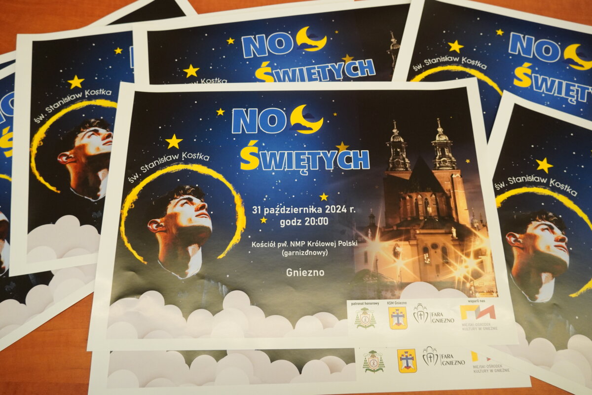 W tym roku patronem gnieźnieńskiej Nocy Świętych jest św. Stanisław Kostka. Dlaczego właśnie ta postać? – W tym roku razem z młodzieżą z Katolickiego Stowarzyszenia Młodzieży – oddział Gniezno – przygotowaliśmy przedstawienie o świętym Stanisławie Kostce, ale nie będzie to stricte przedstawienie historyczne. Próbujemy odczytać historię Stanisława w XXI wieku. Dzisiaj, w Gnieźnie, w 2024 roku. Życie Stasia, Staszka, który rozeznaje powołanie, który zadaje pytanie o Boga, o sens chodzenia na lekcje religii, a także o sens udziału w duszpasterstwie. Co to znaczy być stworzonym do wyższych rzeczy? Gdzie współczesny młody człowiek może szukać sensu wszelkiego działania? – tłumaczy ks. Adam Piechowiak, wikariusz w parafii katedralnej. – Wybraliśmy świętego Stanisława Kostkę dlatego, że jest patronem Katolickiego Stowarzyszenia Młodzieży i ogólnie młodzieży każdej, a z racji tego, że to przedstawienie przygotowali młodzi, chcemy zatrzymać się trochę nad Stanisławem, który młodo umarł mając 18 lat. Myślę, że może być dziś dla młodych inspiracją, wzorem i dobrym przykładem – dodaje ks. Adam. Początek Nocy Świętych to wprowadzenie relikwii świętych z Gniezna i okolic. – Mamy ponad 30 relikwii świętych i błogosławionych, które będą wprowadzone i będą nam towarzyszyć. Myślę, że tego bardzo potrzebujemy, bo taka też jest idea tego wydarzenia; żeby święci nam towarzyszyli, inspirowali nas. Święty Stanisław Kostka zasłynął odwagą, radością i oddaniem do końca Bogu oraz wartościom, o które walczył i które były dla niego ważne – mówił ks. Jarosław Wesołowski, wikariusz w gnieźnieńskiej parafii farnej. Noc Świętych zorganizowano w 2005 roku po raz pierwszy w gnieźnieńskiej parafii farnej. Wydarzenie to w różnej formule organizowane jest w całym kraju.