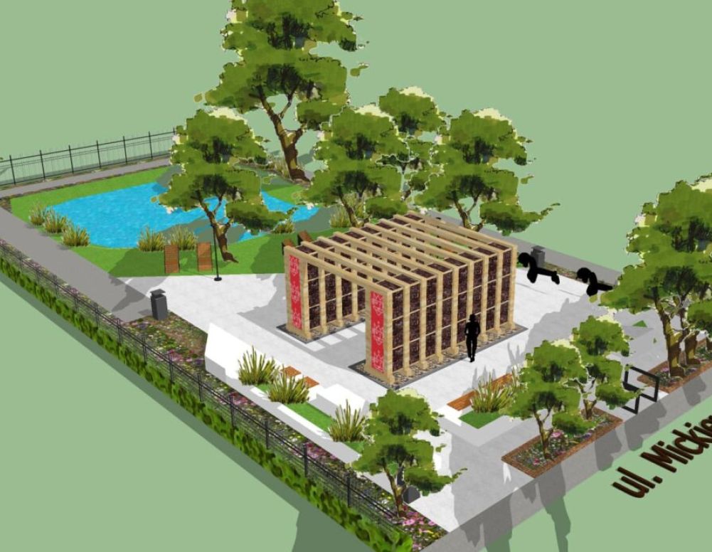 Ten pomysł zgłoszony w budżecie obywatelskim zdecydowanie najbardziej przypadł do gustu gnieźnianom, bo w tzw. projektach dużych zdobył on aż 4432 głosy. Wyceniony przez pomysłodawców na 640 tys. złotych ma być zrealizowany w miejscu dziś mocno zapomnianym, a mianowicie na skwerze ze stawkiem przy ul. Mickiewicza. To szansa na odmianę tego miejsca, ponieważ projekt został rozszerzony o gruntowne zmiany w tym zieleńcu. Same małe tężnie solankowe mają już choćby Czerniejewo czy Września, ale takiej infrastruktury w Gnieźnie do tej pory nie ma. Ta, która tutaj powstanie, będzie miała układ dwustronny, jej konstrukcja będzie z drewna modrzewiowego i składać się będzie z 8 pól tarniny zraszanych solanką o stężeniu 8 do 12% pompowaną w obiegu zamkniętym oraz z podziemnego zbiornika na solankę. Dotychczasowe alejki z kostki betonowej wymienione zostaną na nawierzchnię mineralną wchłaniającą wodę opadową. Zaprojektowano tu również nowe ławki parkowe, kosze na śmieci, stojaki rowerowe, drewniane leżaki oraz nowe oświetlenie. Dosadzone zostaną także platany, lipy i śliwy oraz byliny, łąką kwietna i trawnik. Inwestycja ma być ukończona do 22 grudnia tego roku. Obecnie trwa postępowanie przetargowe.