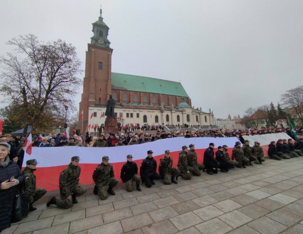 Wzorem minionych lat, w Gnieźnie oficjalna uroczystość z okazji Święta Niepodległości została przygotowana przez Miasto Gniezno i Miejski Ośrodek Kultury. Miejskie obchody rozpoczęły się w gnieźnieńskiej katedrze mszą św. w intencji Ojczyzny, sprawowaną przez ks. abpa Wojciecha Polaka, Prymasa Polski. Po nabożeństwie zgromadzeni przeszli na plac im. Mikołaja Trąby, gdzie odbywała się dalsza część uroczystości. Tutaj nastąpiła prezentacja dzieci i młodzieży, biorących udział w konkursie „Zostań Herosem Niepodległości”, wykonane zostało wspólne pamiątkowe zdjęcie „Pod Biało – Czerwoną”, a chwilę później odśpiewany został Mazurek Dąbrowskiego. Punktualnie o godzinie 11:11 sprzed katedry ruszył X Bieg Niepodległości. Gdy biegacze ruszyli w trasę, na placu przy katedrze nastąpiła dalsza część uroczystości. Do zebranych zwróciła się Joanna Śmigielska, wiceprezydent Gniezna. – Gdy dziś staję przed wami w tym wyjątkowym miejscu, w Gnieźnie – Pierwszej Stolicy Polski, czuję ogromny zaszczyt i dumę. Właśnie tu, w kolebce polskiej państwowości, gdzie ponad tysiąc lat temu zaczęły się dzieje naszego narodu, spotykamy się by wspólnie celebrować Narodowe Święto Niepodległości. 11 listopada przypomina nam, że wolność, którą obecnie się cieszymy, nie jest czymś oczywistym. Przez 123 lata nasi przodkowie, pozbawieni suwerenności, nie tracili nadziei i walczyli o to, by Polska wróciła na mapę Europy. Z ich niezłomnej postawy, odwagi i determinacji, zrodziła się nasza dzisiejsza radość z odzyskania niepodległości. To hołd dla tych wszystkich, którzy oddali życie za wolną Polskę oraz dla tych, którzy działali na rzecz jej odrodzenia. Dziś, jako wolni obywatele, mamy przywilej i obowiązek dbać o tę wolność; nie tylko wspominając bohaterów, ale także działając na rzecz przyszłych pokoleń – mówiła wiceprezydent Gniezna. – Obchody Święta Niepodległości w Gnieźnie to czas, by wspólnie przeżywać dumę i radość z naszej historii. Ulice miasta wypełniły biało – czerwone barwy, słychać patriotyczne pieśni, a nasze serca biją w rytmie miłości do Ojczyzny. Niech ten dzień będzie czasem refleksji, ale i radosnego świętowania, które łączy wszystkich Polaków, niezależnie od wieku, poglądów, czy pochodzenia. Wspólne marsze, koncerty, spotkania, uroczystości, a także imprezy sportowe są świadectwem tego, jak silna jest nasza więź narodowa i jak wiele nas łączy. Dzisiejsze obchody przypominają, że wolność to wspólne dobro, które musimy pielęgnować i szanować – podkreślała Joanna Śmigielska, dziękując wszystkim mieszkańcom za włączenie się we wspólne przeżywanie tego święta, szczególna słowa podziękowania kierując do najmłodszych mieszkańców Pierwszej Stolicy Polski, którzy od lat dzięki swojemu zaangażowaniu i udziale w konkursie „Zostań Herosem Niepodległości” przypominają sylwetki bohaterów sprzed ponad stu lat.
