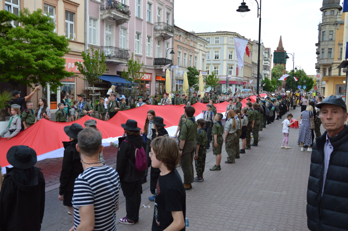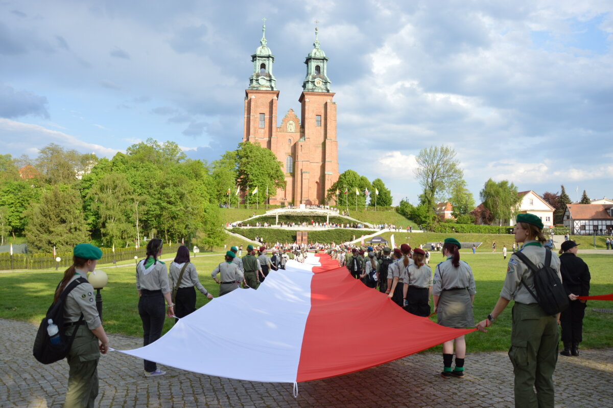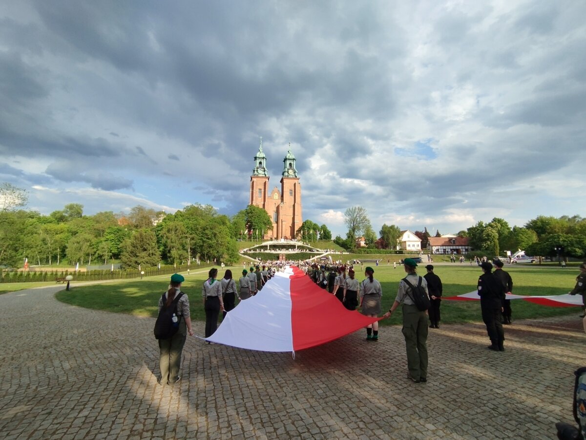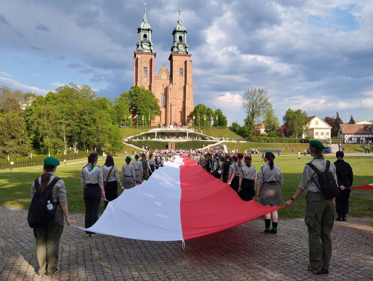 W wyjątkowy sposób w Gnieźnie uczczono Dzień Flagi Rzeczypospolitej Polskiej. Ulicami miasta przeszedł uroczysty pochód, którego głównym symbolem była imponująca, stumetrowa biało – czerwona wstęga narodowa. Wydarzenie zgromadziło wielu uczestników, którzy z dumą nieśli narodowe barwy, manifestując tym samym jedność i patriotyzm.