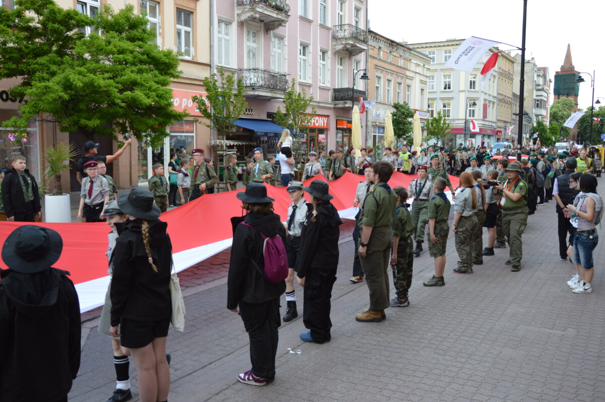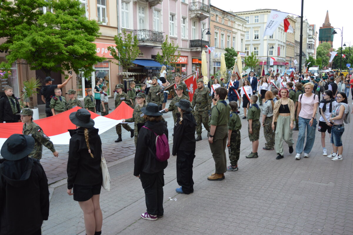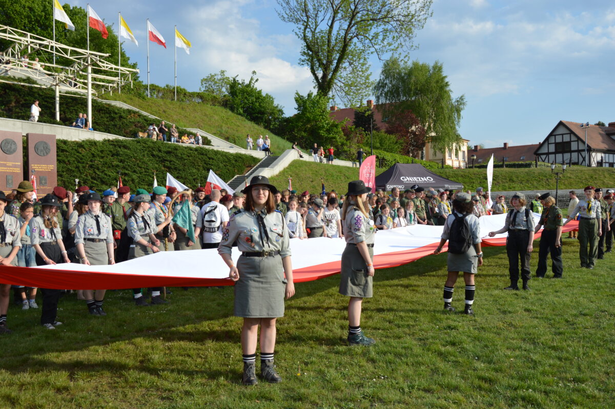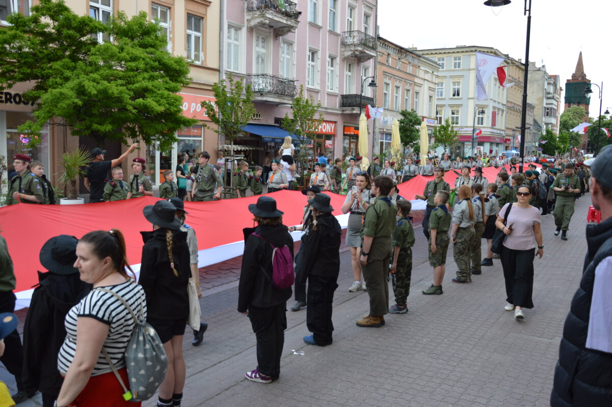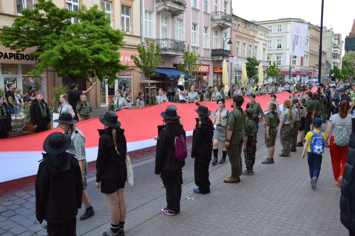 W wyjątkowy sposób w Gnieźnie uczczono Dzień Flagi Rzeczypospolitej Polskiej. Ulicami miasta przeszedł uroczysty pochód, którego głównym symbolem była imponująca, stumetrowa biało – czerwona wstęga narodowa. Wydarzenie zgromadziło wielu uczestników, którzy z dumą nieśli narodowe barwy, manifestując tym samym jedność i patriotyzm.