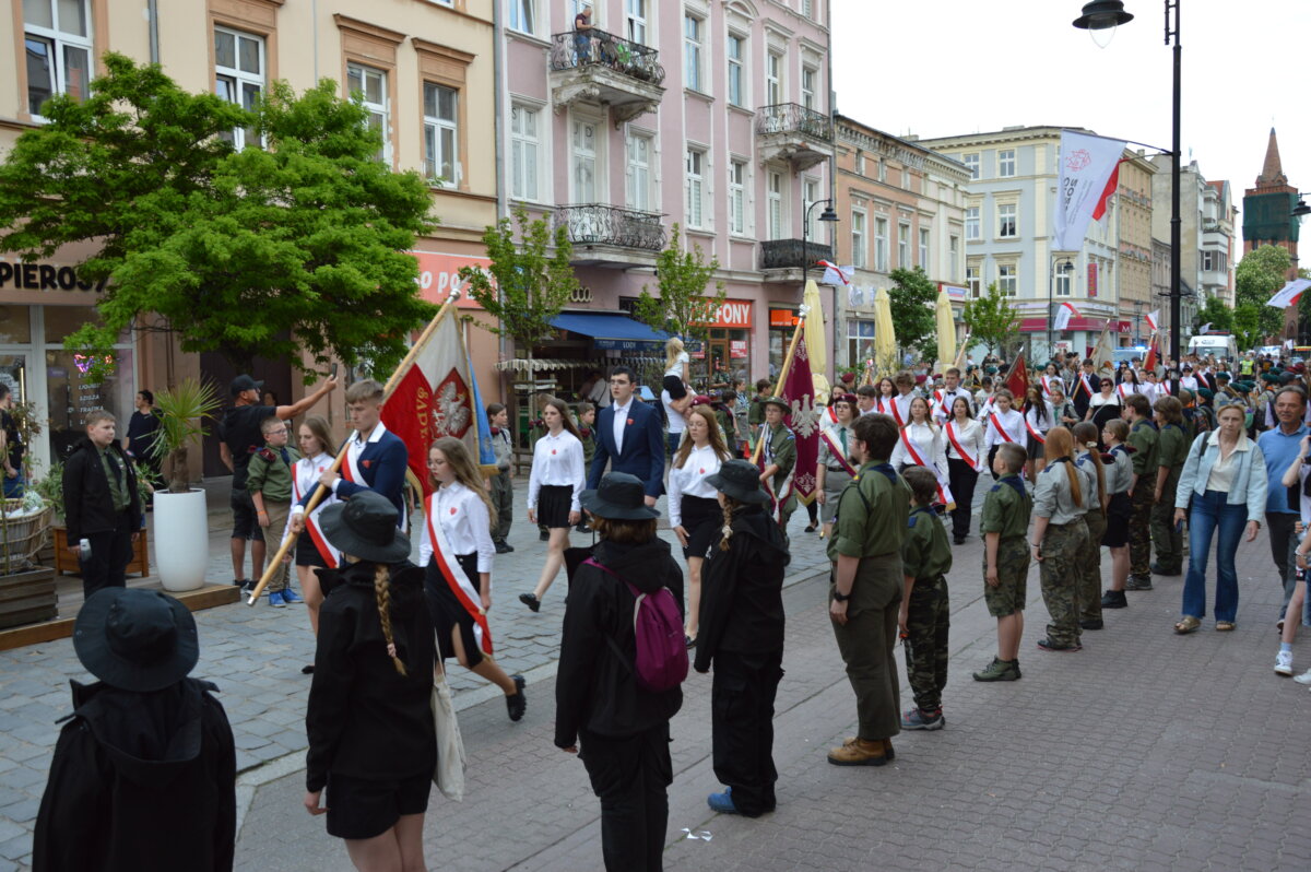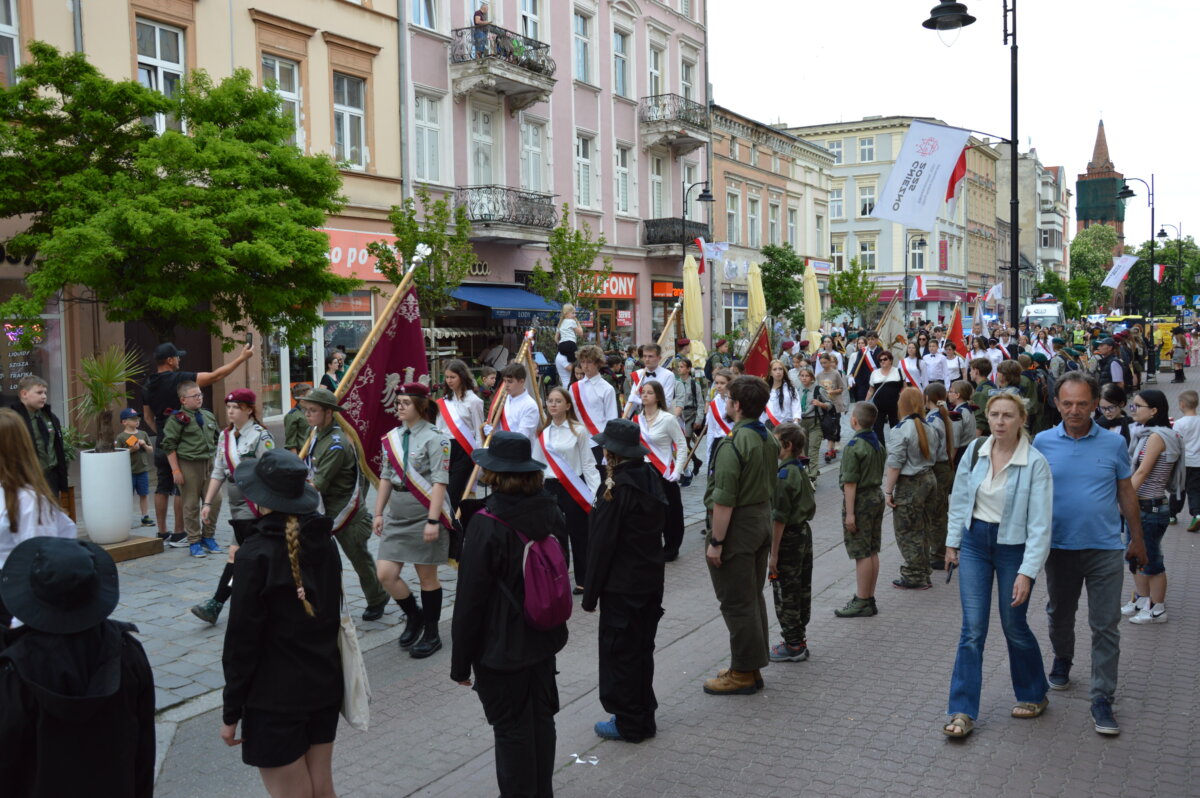 – Chcemy godnie uczcić Święto Flagi, niejako symbolu, ale tak naprawdę to też znak naszej tożsamości, patriotyzmu i historii – mówił Michał Powałowski, prezydent Miasta Gniezna. – Jesteśmy cały czas w cyklu różnego typu wydarzeń, związanych z 1000 – leciem koronacji Bolesława Chrobrego na pierwszego króla Polski w Gnieźnie. Odbyło się wspólne posiedzenie Sejmu i Senatu, w tej chwili w Gnieźnie przebywają wielkopolscy harcerze, gościmy też szkoły im. Bolesława Chrobrego z całej Polski, które postanowiły przyjechać do Pierwszej Stolicy Polski. Dzisiaj wspólnie idziemy pod biało – czerwoną, niosąc dumnie przez miasto nasze barwy narodowe i manifestujemy nasz patriotyzm – mówił włodarz Gniezna.