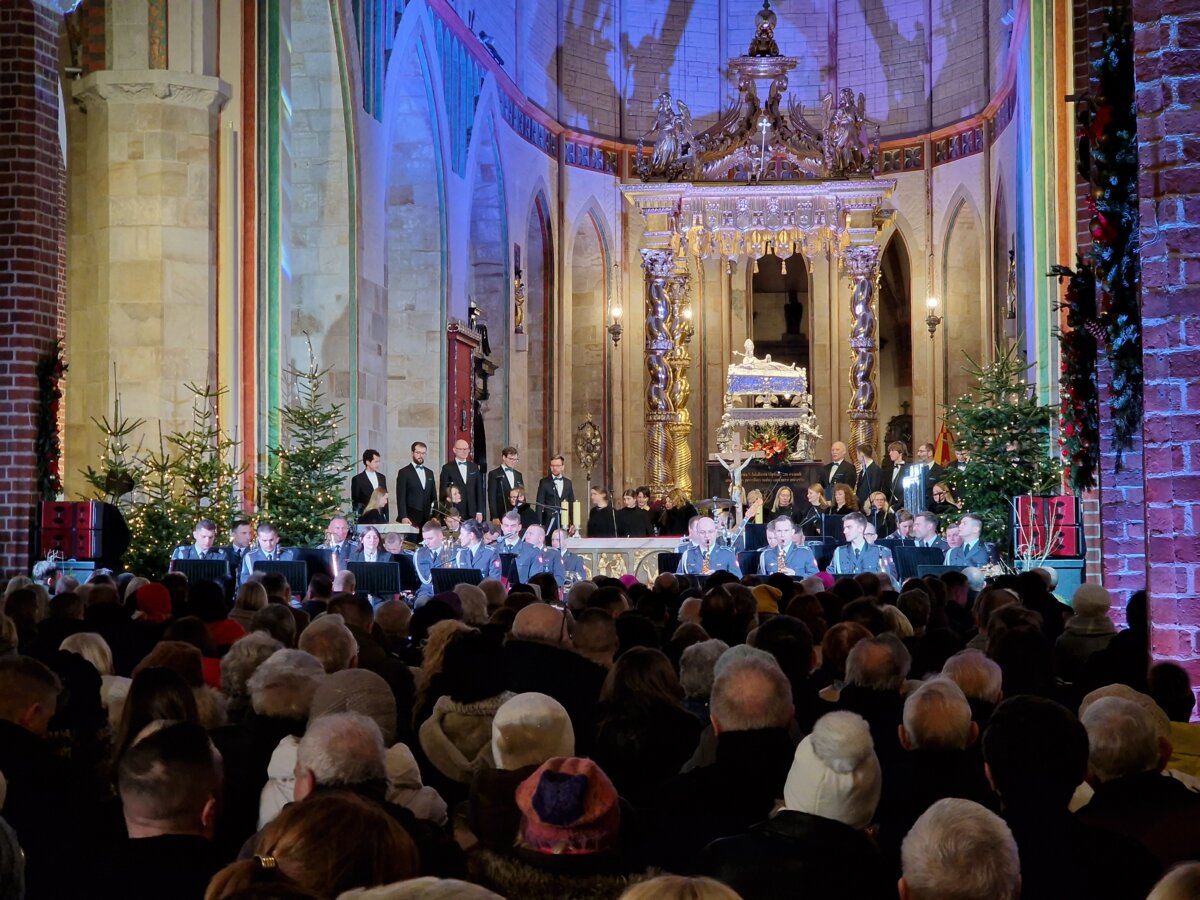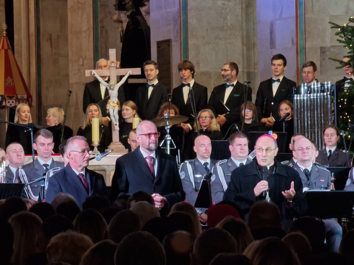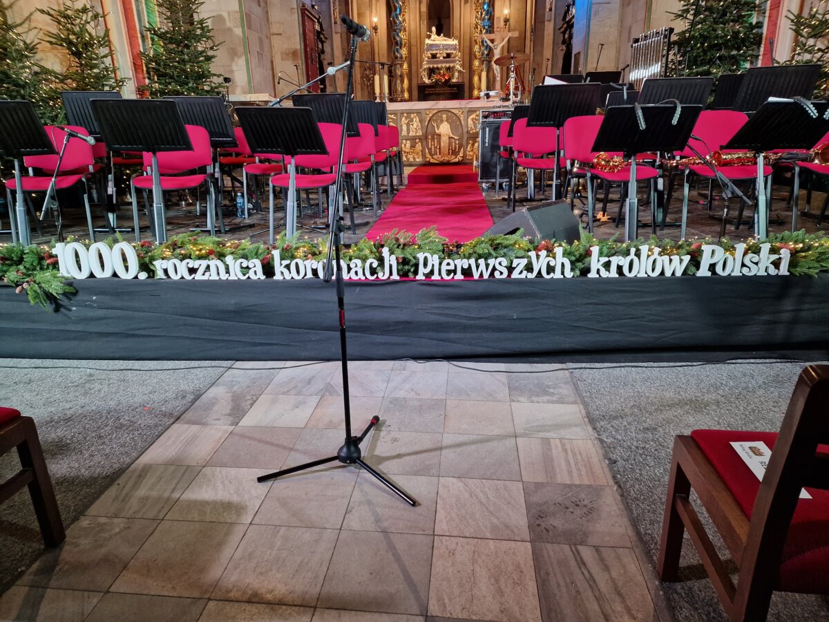 W sobotę 4 stycznia do gnieźnieńskiej bazyliki archikatedralnej przybyło ok. 800 osób – zaproszonych gości i mieszkańców Gniezna, by wspólnie radosnym koncertem rozpocząć jubileuszowy rok. Dla zebranych, w transmitowanym na żywo w Telewizji Polskiej wydarzeniu, wystąpiła Orkiestra Reprezentacyjna Sił Powietrznych im. Karola Kurpińskiego pod batutą ppłk. Pawła Joksa. Żołnierzy wsparł Chór Kameralny Dysonans prowadzony przez prof. Magdaleną Wdowicką-Mackiewicz oraz soliści: Joanna Horodko i Marcin Wojciechowski. O podniosłości chwili i całego 2025 roku mówił tuż przed koncertem abp Wojciech Polak, Prymas Polski. – Ważnym wydarzeniem dla Gniezna i dla Polski jest tysięczna rocznica koronacji królewskich Bolesława Chrobrego i Mieszka II Lamberta, wraz z królową Rychezą. Początek roku nie tylko przypomina nam o tych wydarzeniach, ale budzi też w sercach wdzięczność. Dlatego rozpoczynamy ważnym wydarzeniem muzycznym te obchody, bo jest to dla nas radość. To też pokazuje, że w różnych wymiarach, narodziny królestwa rodzą i rodziły błogosławione owoce – stwierdził metropolita gnieźnieński.