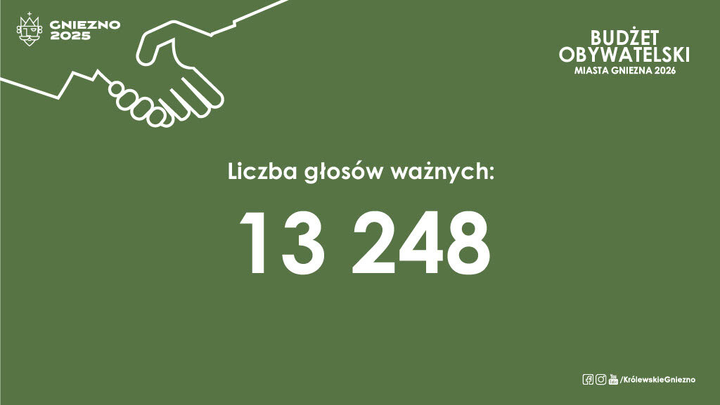 Mieszkańcy Gniezna oddali ponad 13 tysięcy głosów. Uważamy tę frekwencję za dobrą. Wybrane projekty zostaną wpisane do miejskiego budżetu na 2026 rok – poinformował 10 października podczas konferencji prasowej Łukasz Muciok, zastępca prezydenta Gniezna.