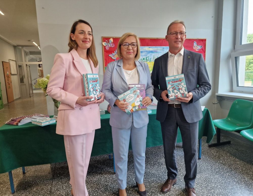 Po Wrześni i powiecie wrzesińskim, do szkół podstawowych z terenu Gniezna i powiatu gnieźnieńskiego trafiają właśnie pomoce naukowe przygotowane przez ekspertów Ministerstwa Klimatu i Środowiska. – Służą one promocji jednego z symboli polskiego środowiska czyli białego bociana – powiedziała na konferencji prasowej w Szkole Podstawowej nr 7 w Gnieźnie, Paulina Hennig-Kloska, szefowa resortu, która osobiście z zespołem ministerstwa przywiozła komiksy, książki i gry z bocianem w roli głównej. – Bocian jest symbolem czystości środowiska. Tam, gdzie zakłada gniazda, tam środowisko wypełnia wymagające parametry. Jest też gatunkiem parasolowym, który chroni też inne mniejsze gatunki. Tą serią chcemy wspierać szkoły materiałami dodatkowymi, które choć nie stanowią podstawy programowej, to mogą rozszerzyć zagadnienia np. na biologii czy przyrodzie, ale też w świetlicach – zauważyła minister. Na bocianią serię składa się komiks, książka oraz gra karciana z pytaniami. – W ten sposób możemy uczyć poprzez zabawę przybliżając ważne aspekty środowiskowe ale także porozmawiać o bioróżnorodności – dodaje P. Hennig-Kloska, która podkreśla, że materiał jest przystępnie przygotowany w formie atrakcyjnych graficznie i merytorycznie książeczek. Seria wydawnicza trafi teraz do wszystkich szkół podstawowych z terenu powiatu gnieźnieńskiego.